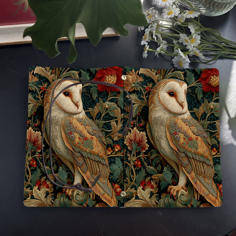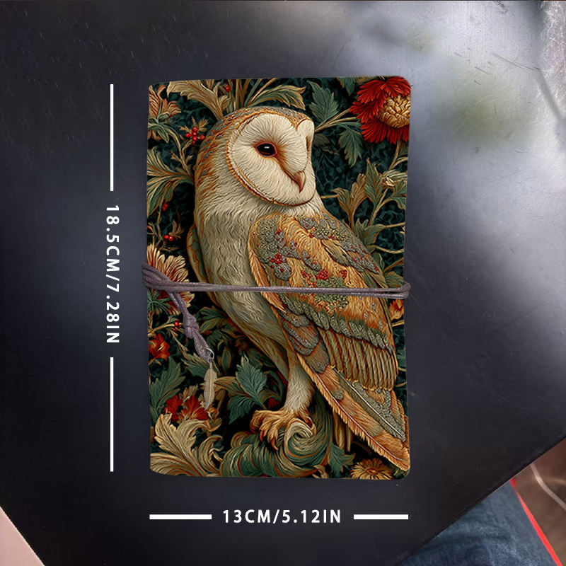Cahier vintage A6 fait à la main fermeture à cravate 80 feuilles cadeau parfait pour planifier des notes de réunion avec des fleurs de chouette effraie Berr