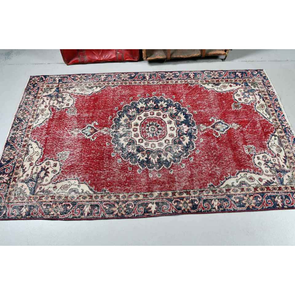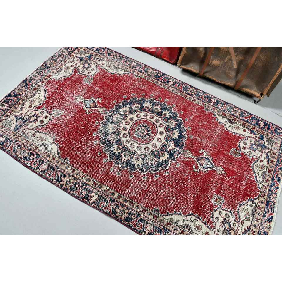 Tapis d'appoint vintage 3,7x6,3 pieds, tapis turc en laine rouge à imprimé animalier