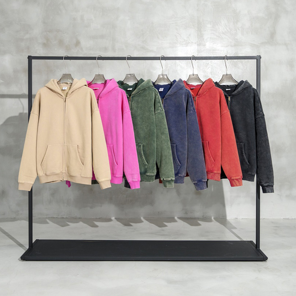Vintage Acid Wash Pullover Hoodies for Men Zipper-Up Street Fashion with Oversized Fit and Digital Printing Winter Style