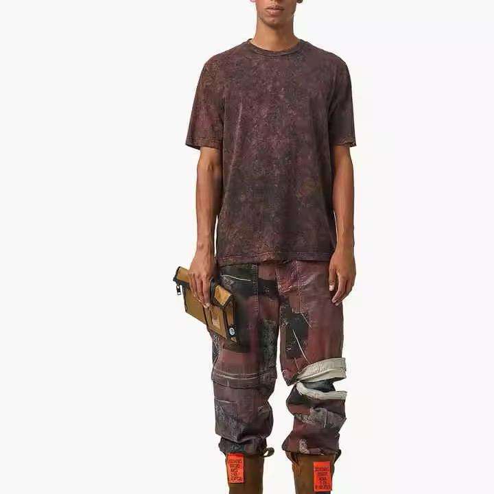 T-shirt vintage délavé à l'acide pour homme, coupe ample personnalisée, 100% coton, t-shirt décontracté