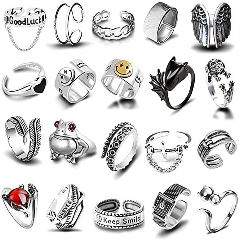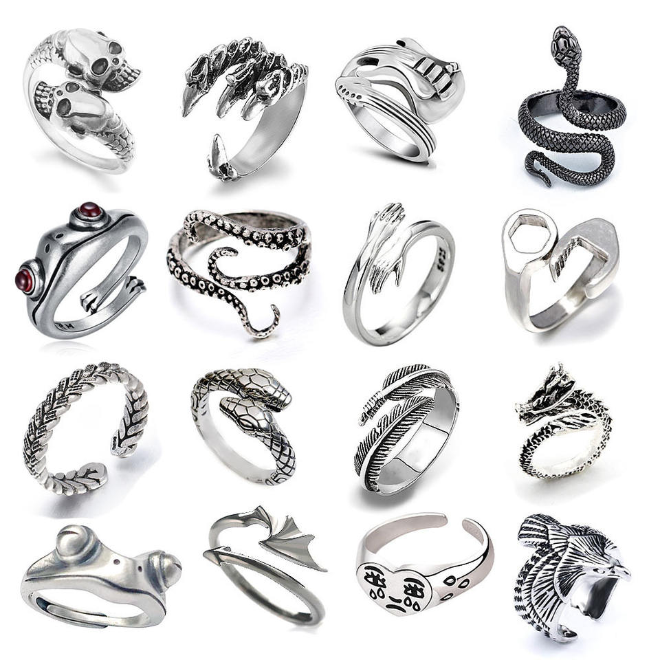 Bague ajustable vintage en alliage, motif serpent, crâne et croix, pour anniversaire, idéale pour un ensemble de bagues à superposer