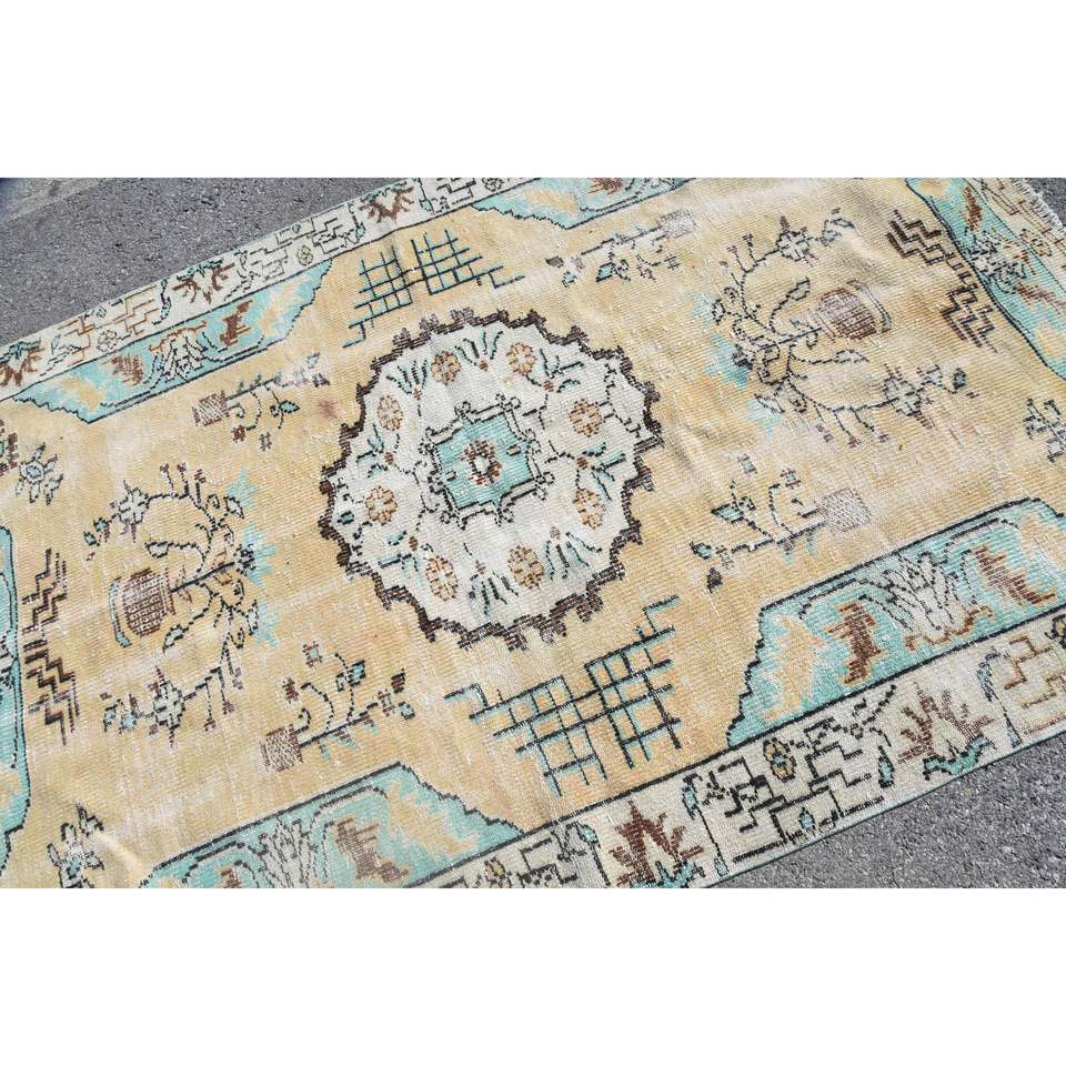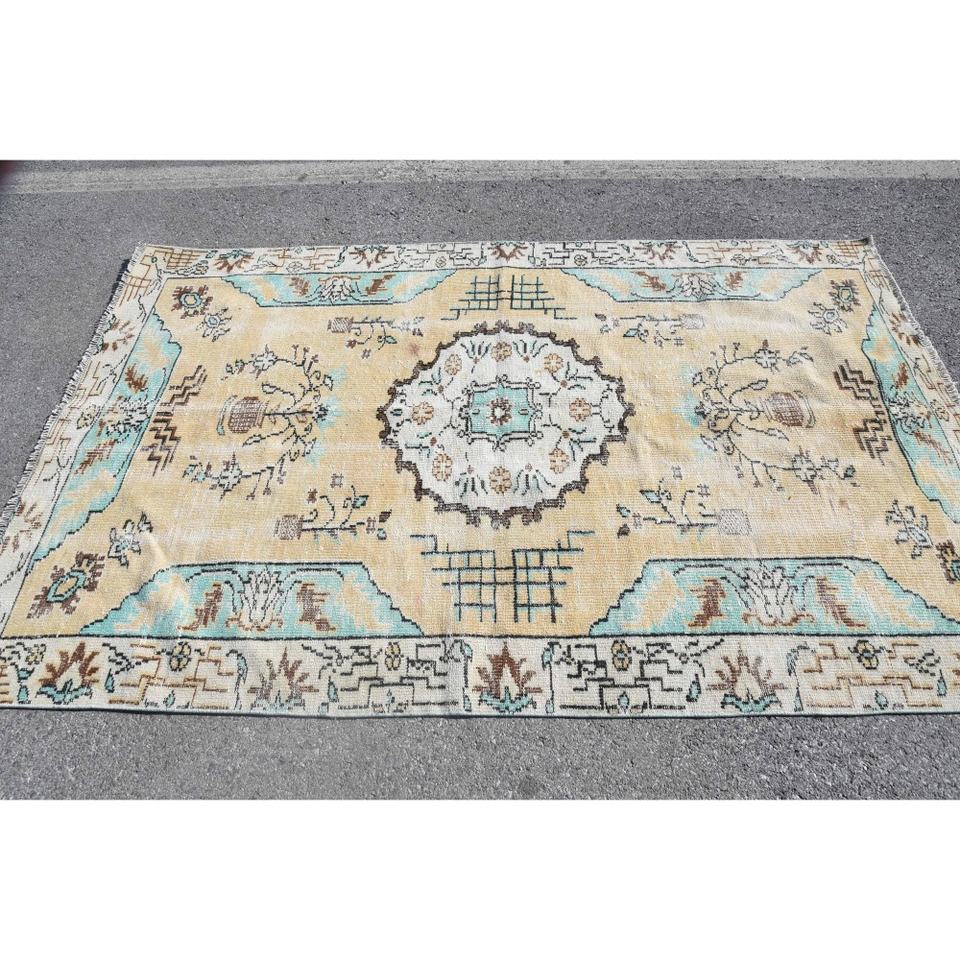 Tapis vintage 5,1x7,8 pi (156x239 cm), tapis turc beige uni