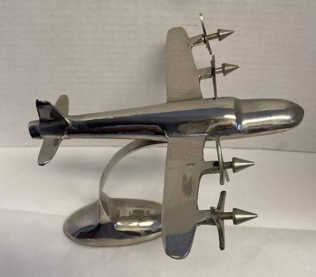 Vintage Art Deco Metal Airplane Desk Decor Four Propeller Silver Aluminum Figurine Collectible Office Home Decoration Gift