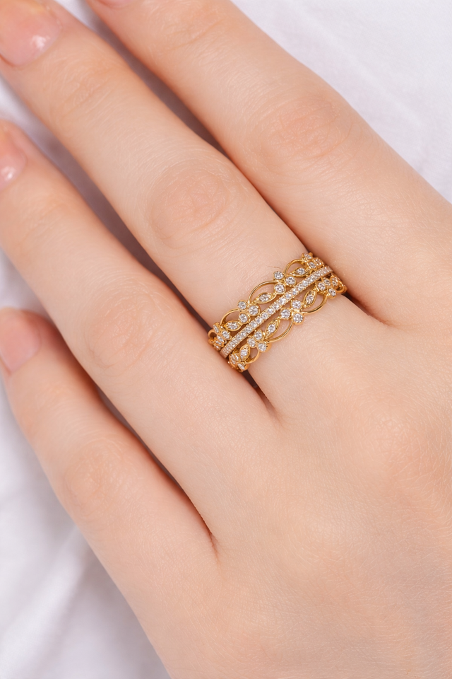 Nom du produit:Alliance en or 10K 14K large avec motif de feuilles multi-rangs