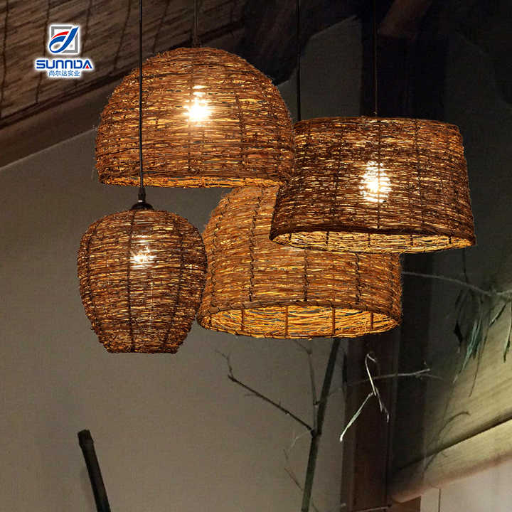 Vintage bambou rotin lustre traditionnel à la main pendentif lampe pendentif accroché lumière pour hôtel appartement villa restaurant