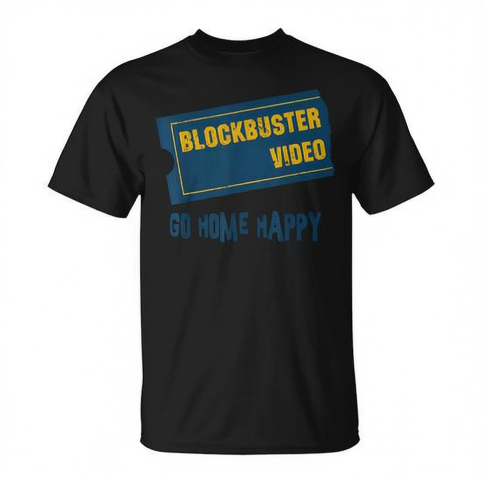 T-shirt Vintage Basique avec Citation Rétro et Motif Enregistrement Vidéo, Style Blockbuster pour Promotions