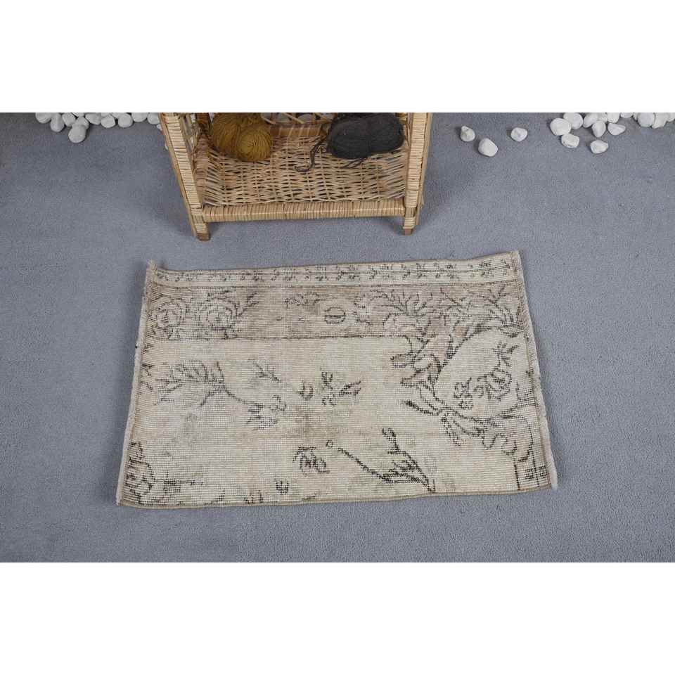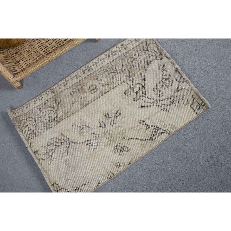 Tapis en laine beige vintage à motifs floraux 1,8 x 2,6 pieds, fait main, patchwork, design rectangulaire, salle à manger, écologique, poils moyens, soie de bambou