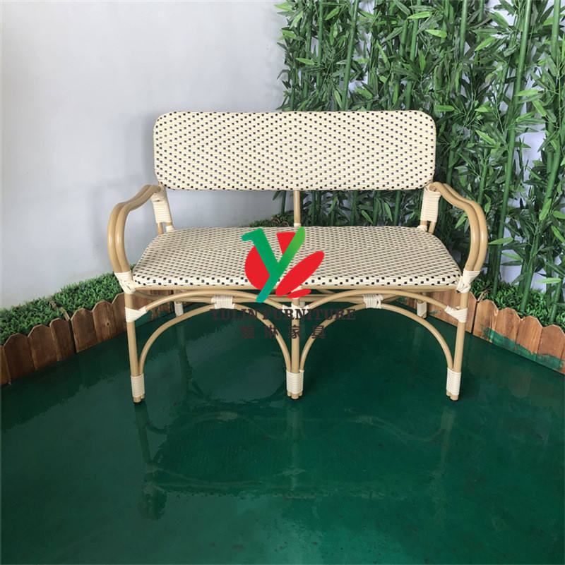 Vintage Bistro Wicker Aluminum Restaurant Bench Seat
