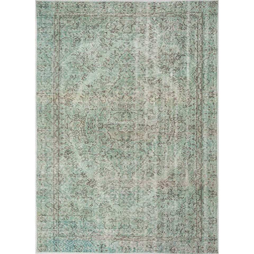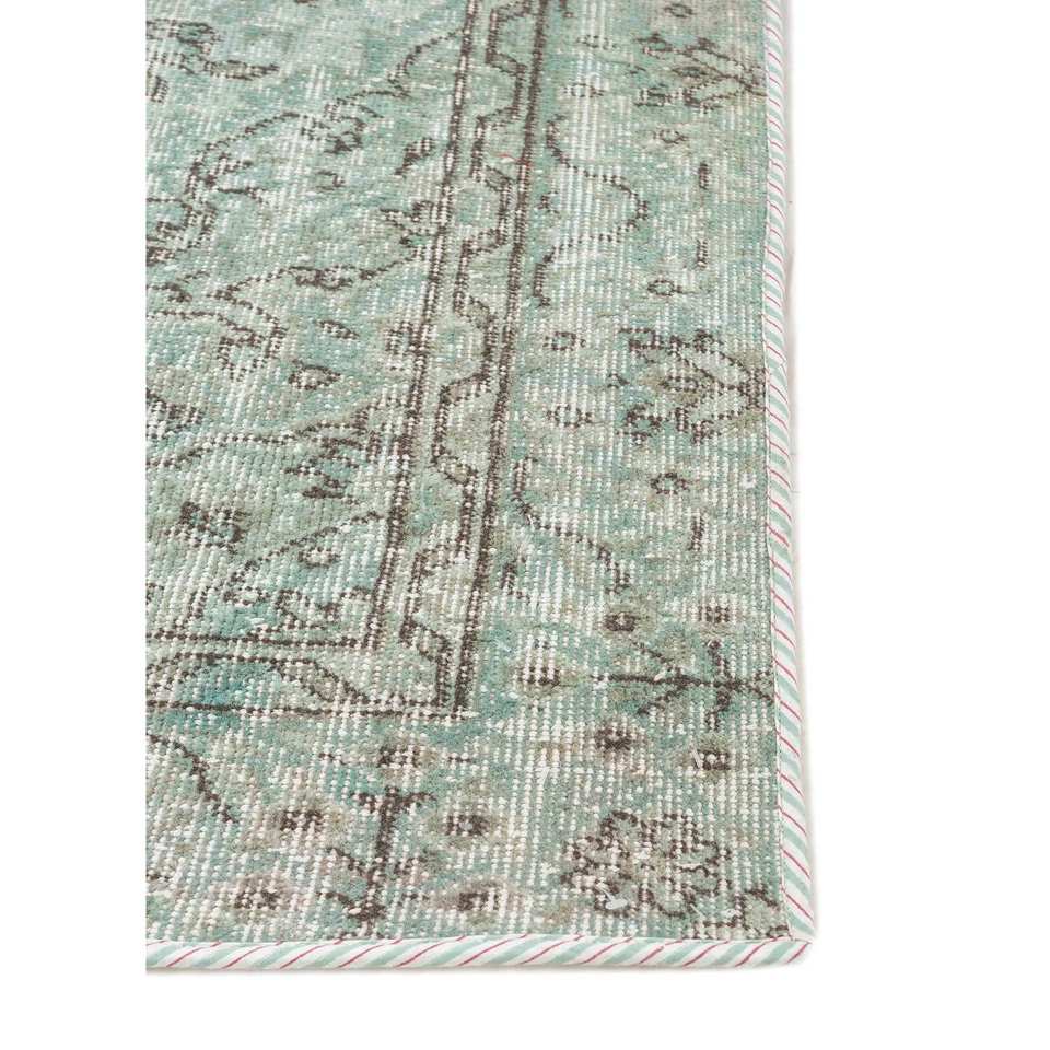 Tapis en laine bleu vintage noué à la main, motif médaillon rectangulaire pour salon ou couloir - Pae-67(Fr)
