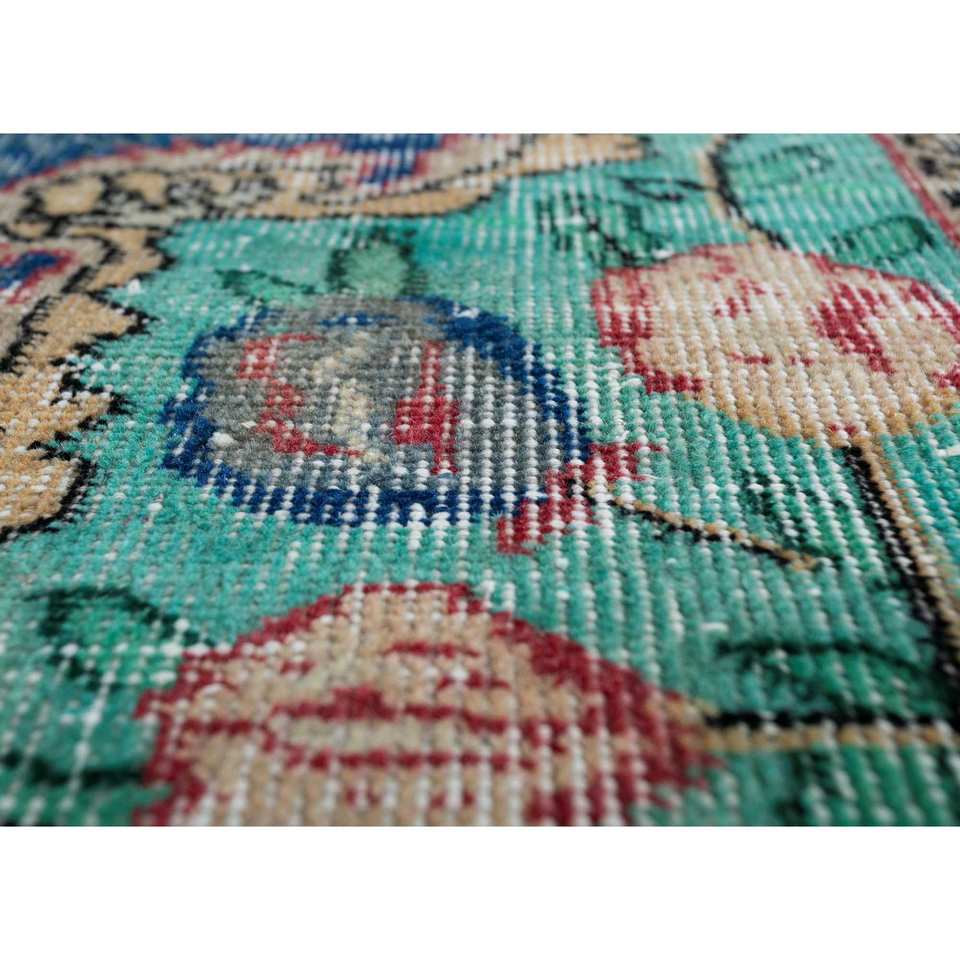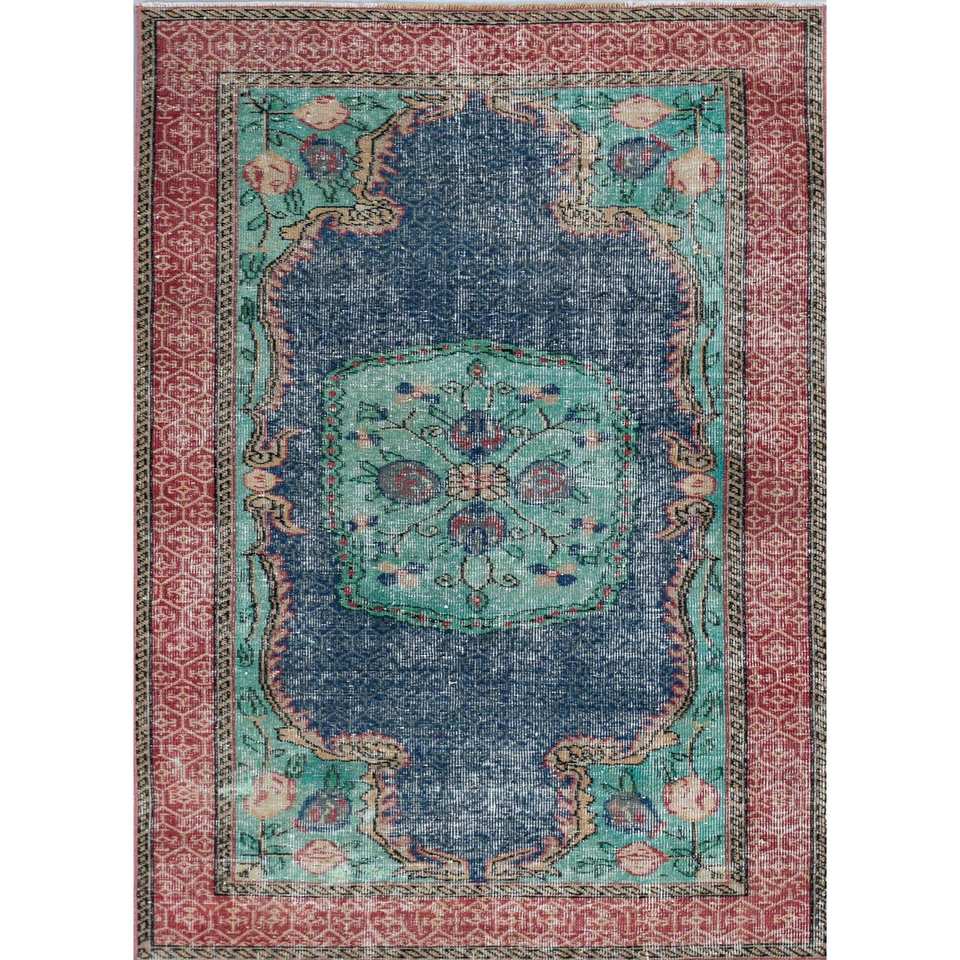 Tapis en laine bleu vintage noué à la main pour la maison - Idéal pour salon, couloir, entrée, chambre d'adolescent - Motif médaillon rectangulaire abstrait