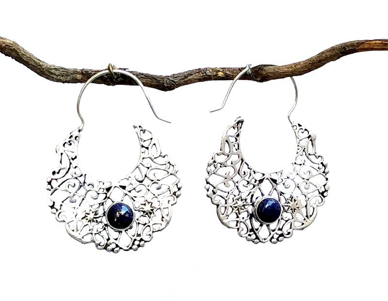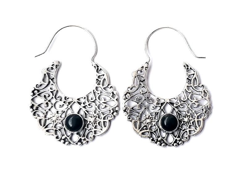 Boucles d'oreilles créoles en plaqué argent de style bohème vintage Bijoux de mode pour femmes avec clous en pierres précieuses naturelles en laiton