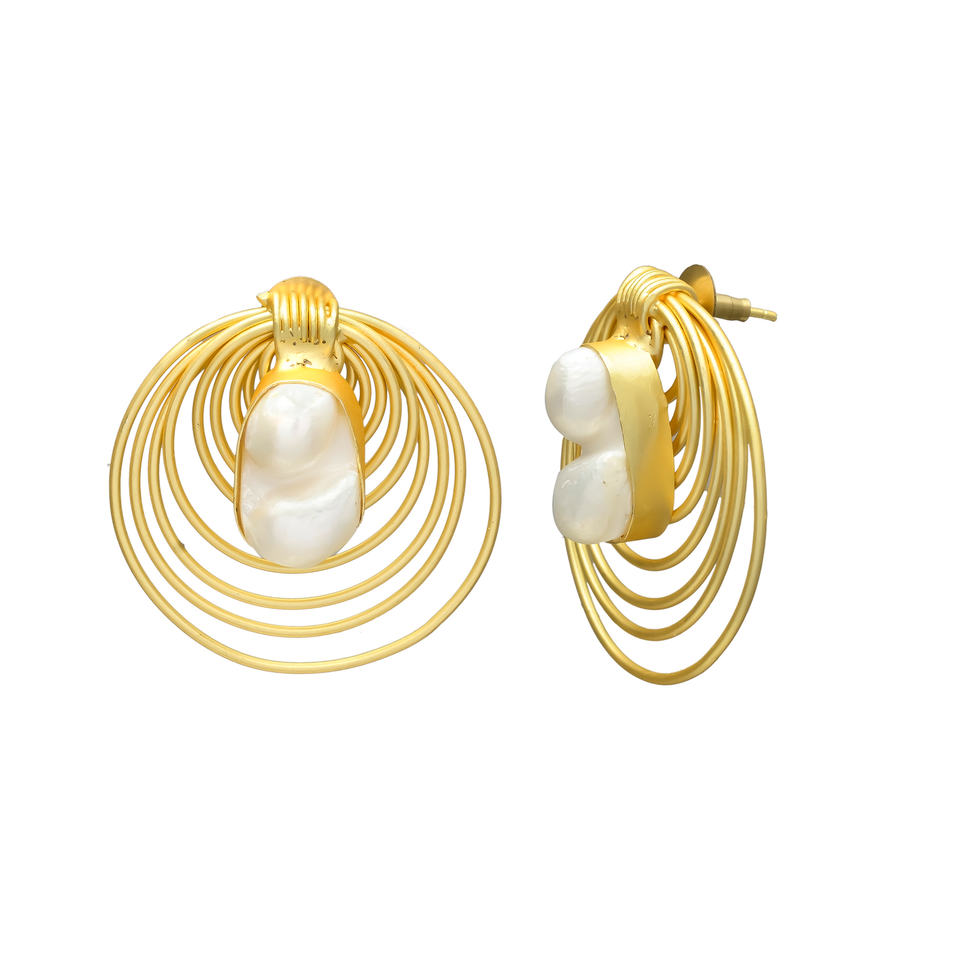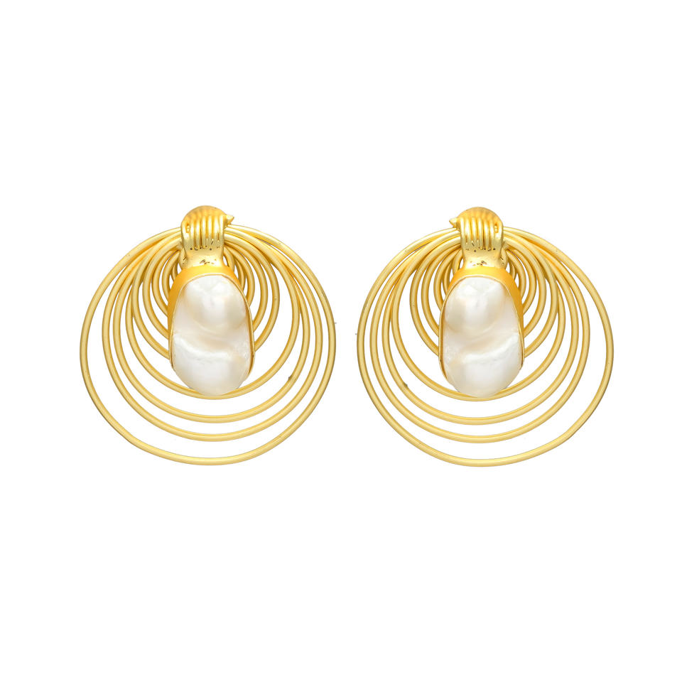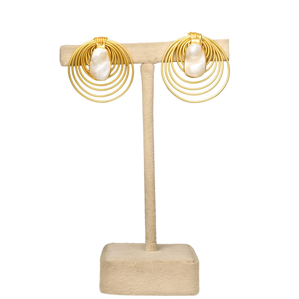 Vintage Gold Plated Brass Freshwater Pearl Dangle Stud Earrings-Statement Jewelry for Bridal and Wedding