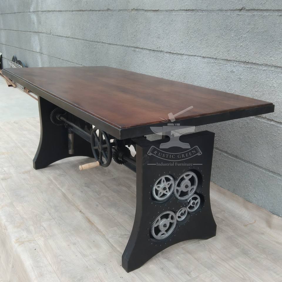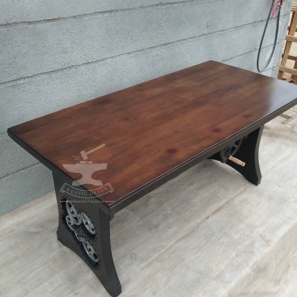 Base de bureau de table réglable en fonte vintage pour restaurant et salle à manger avec vérin à vis à manivelle manuelle