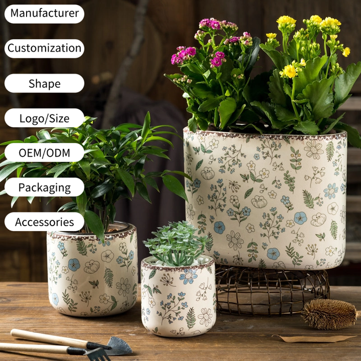 Pot de fleurs en céramique vintage, design rustique de ferme, pour plantes succulentes, orchidée papillon, balcon créatif, pot extérieur