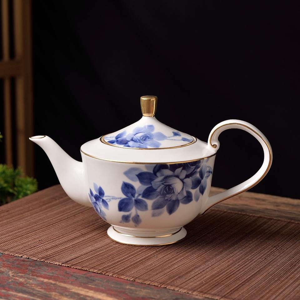 Théière portable vintage en porcelaine de style américain, écologique, pour la maison, motif lotus entrelacé