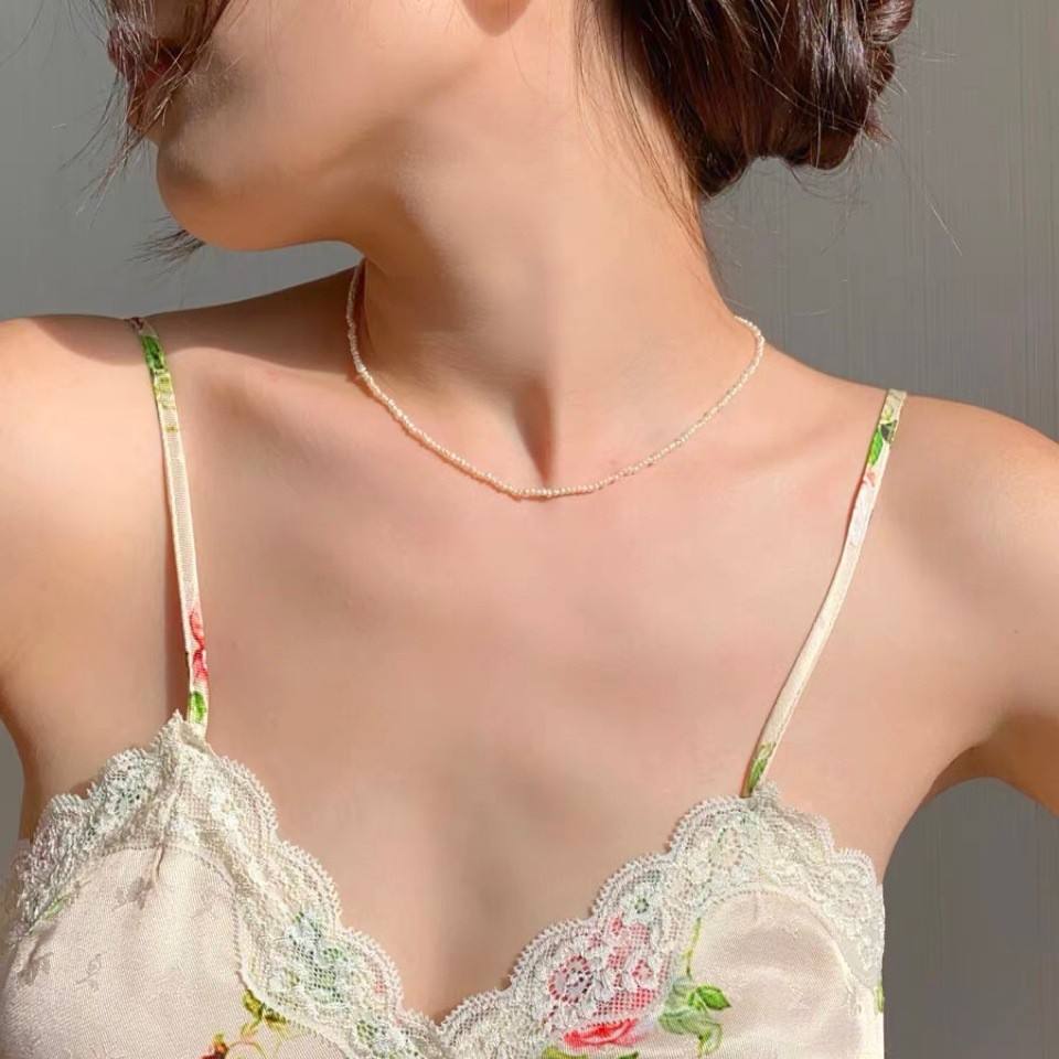 Collier ras du cou vintage pour femmes, perle d'eau douce naturelle, grains de riz extrêmement petits, collier fin, chaîne de clavicule