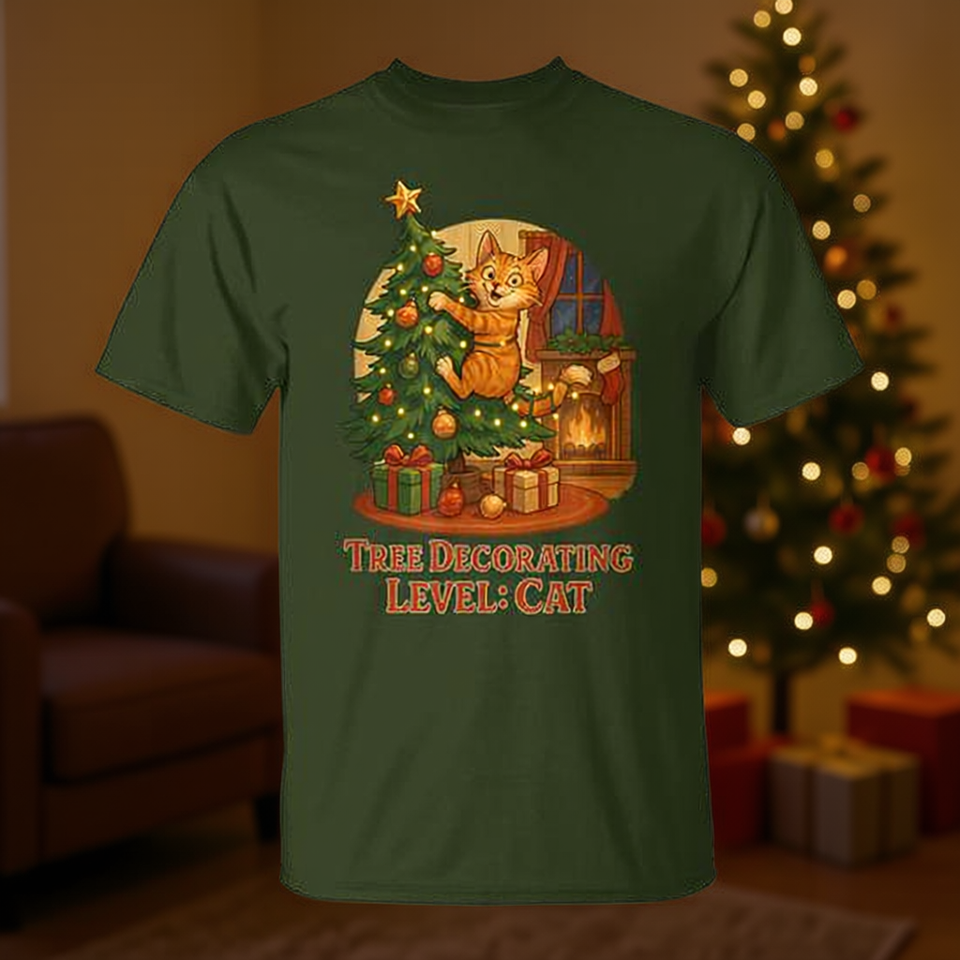 T-shirt vintage pour la décoration de l'arbre de Noël avec un chat