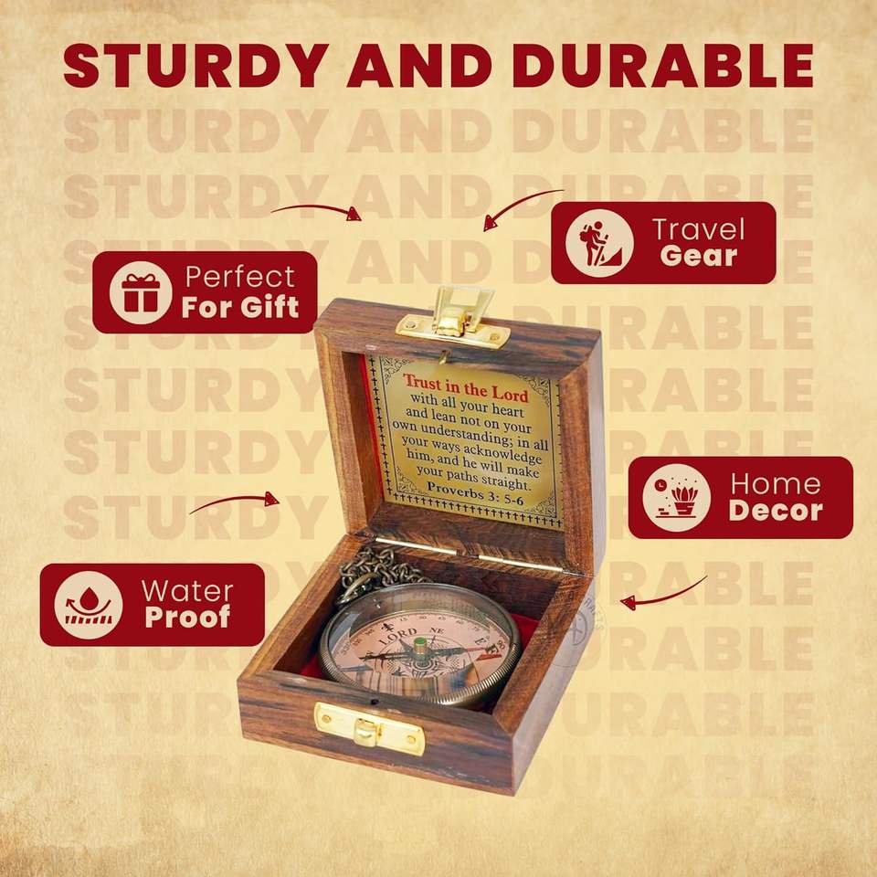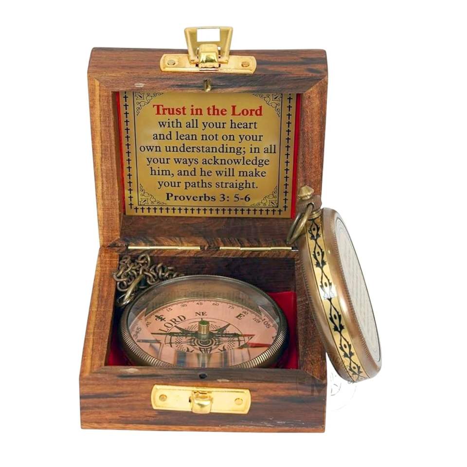 Vintage Classic Copper Compass with Bible Verse Trust Lord All Your Heart Christian Gift Baptism Confirmation Graduation Circle
