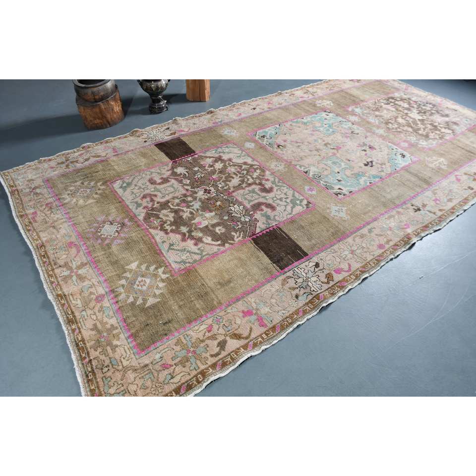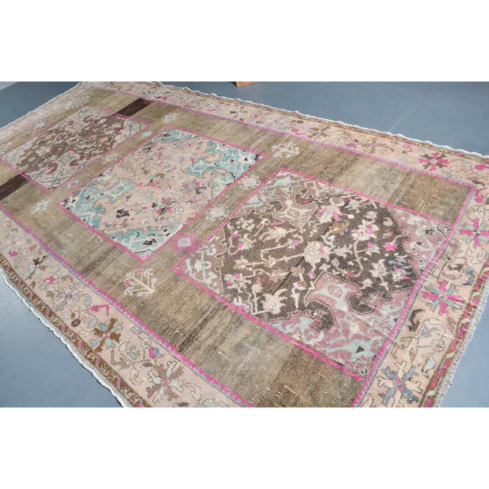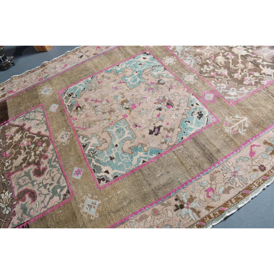 Tapis turc classique Vintage Beige marron 6.8 'X 12.7' fait à la main laine latex support rectangulaire Patchwork motif pour adolescents
