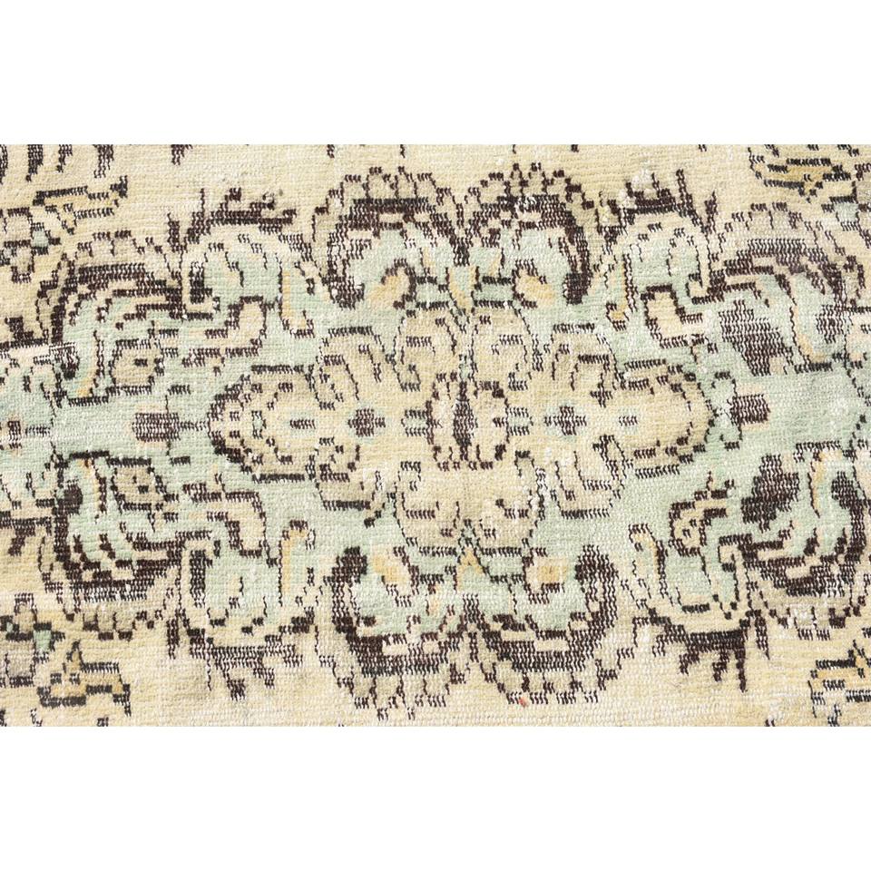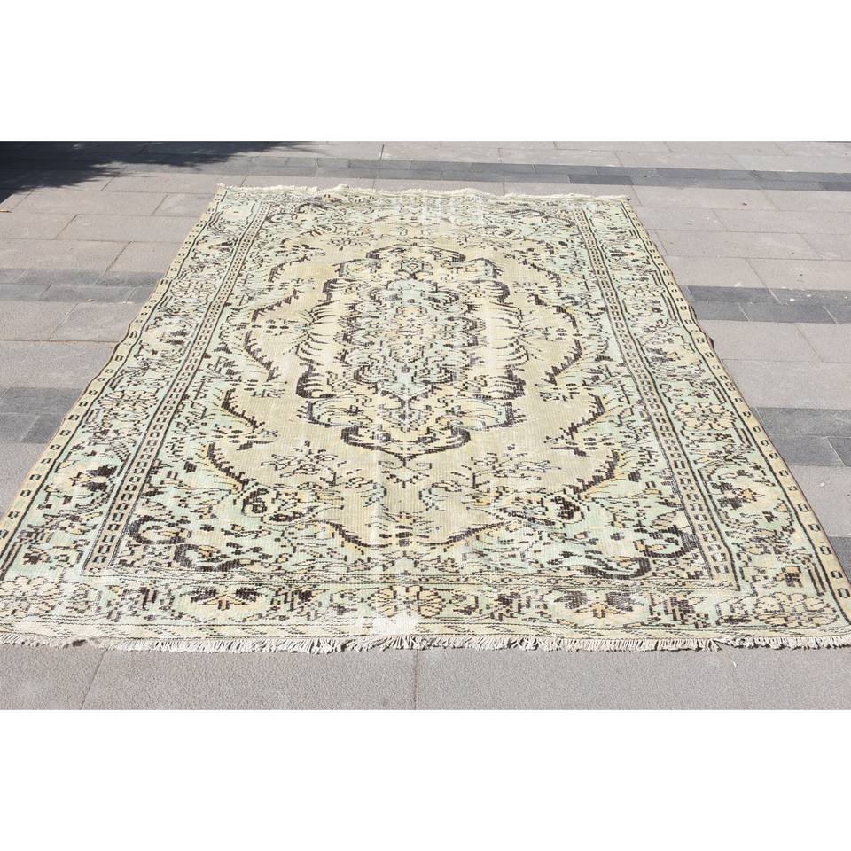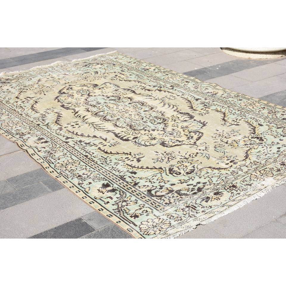 Tapis turc classique vintage en laine patchwork vert beige avec support en latex, tapis de lit rectangulaires faits à la main de 6x9 pieds