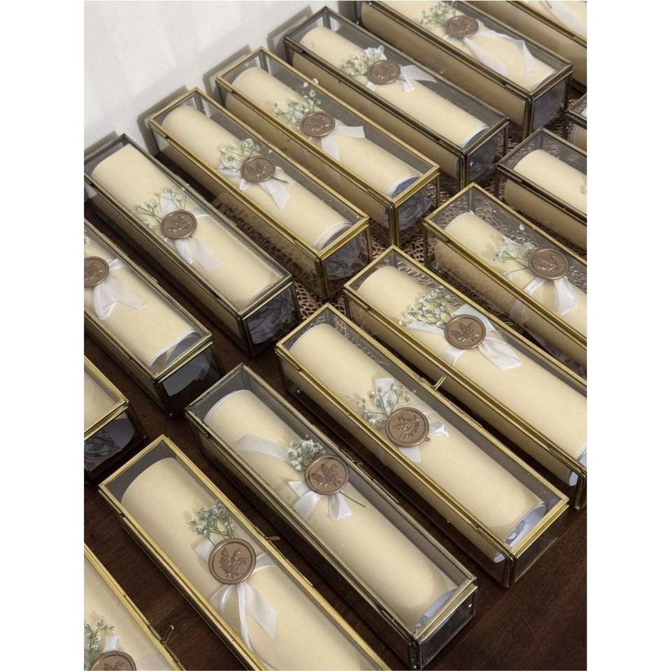 Type de texte:Boîte à parchemin de luxe en verre, faite à la main