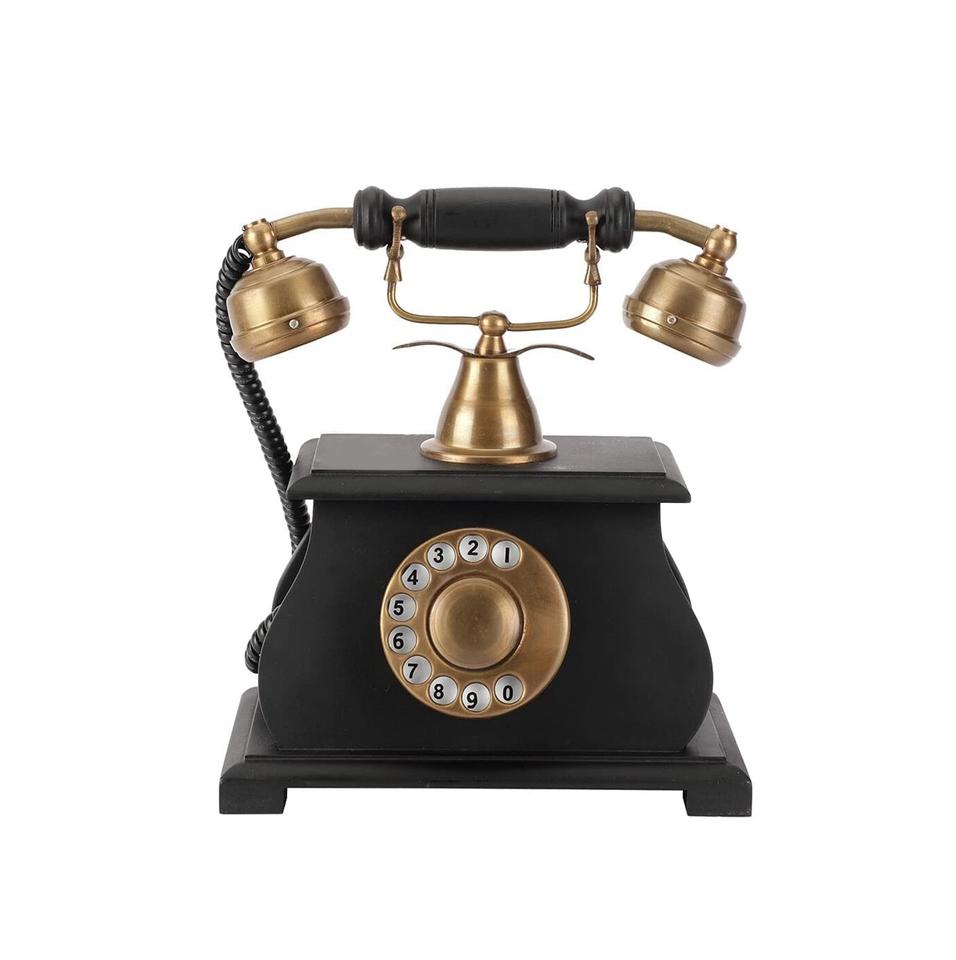 Vintage Collection Antique Telephone Showpiece Wholesale Supplier Brass and Wooden Decorative Piece Metal Construction