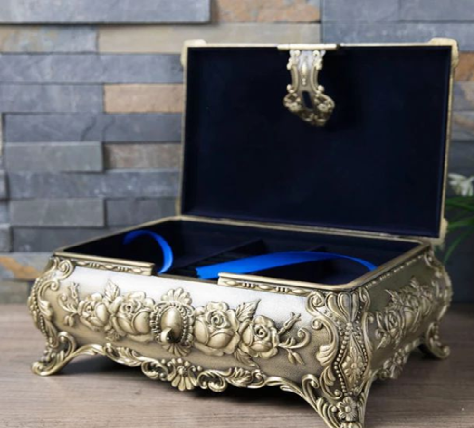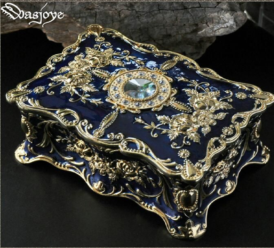 Boîte à bijoux en métal ton cuivre vintage avec gaufrage en cristal et rose-cadeau souvenir élégant en gros