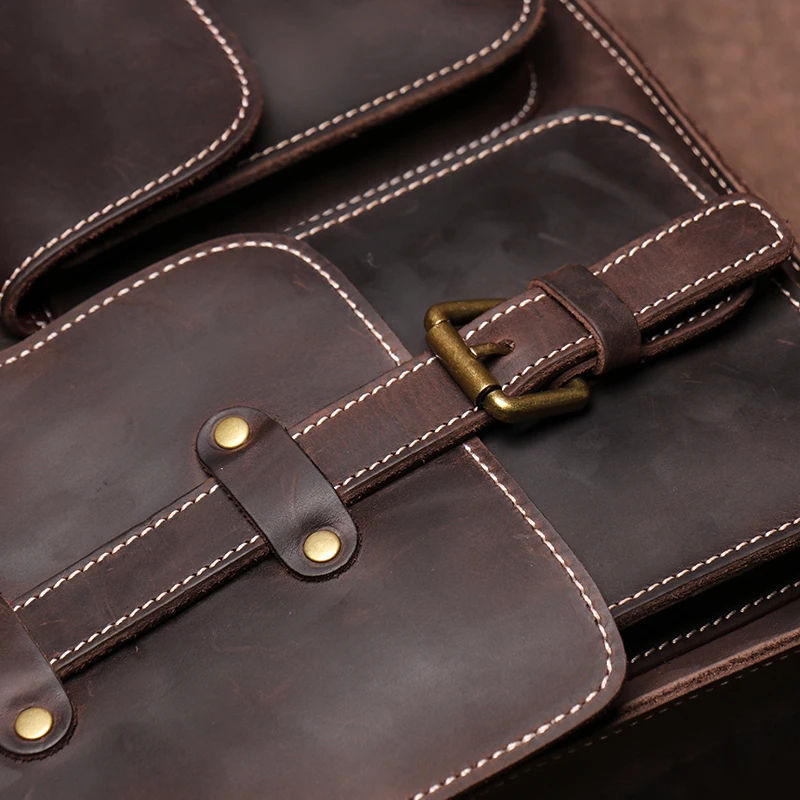 Vintage Crazy Horse Cowhide Crossbody Bag for Men Genuine Leather Messenger with Zipper Closure Reusable Feature