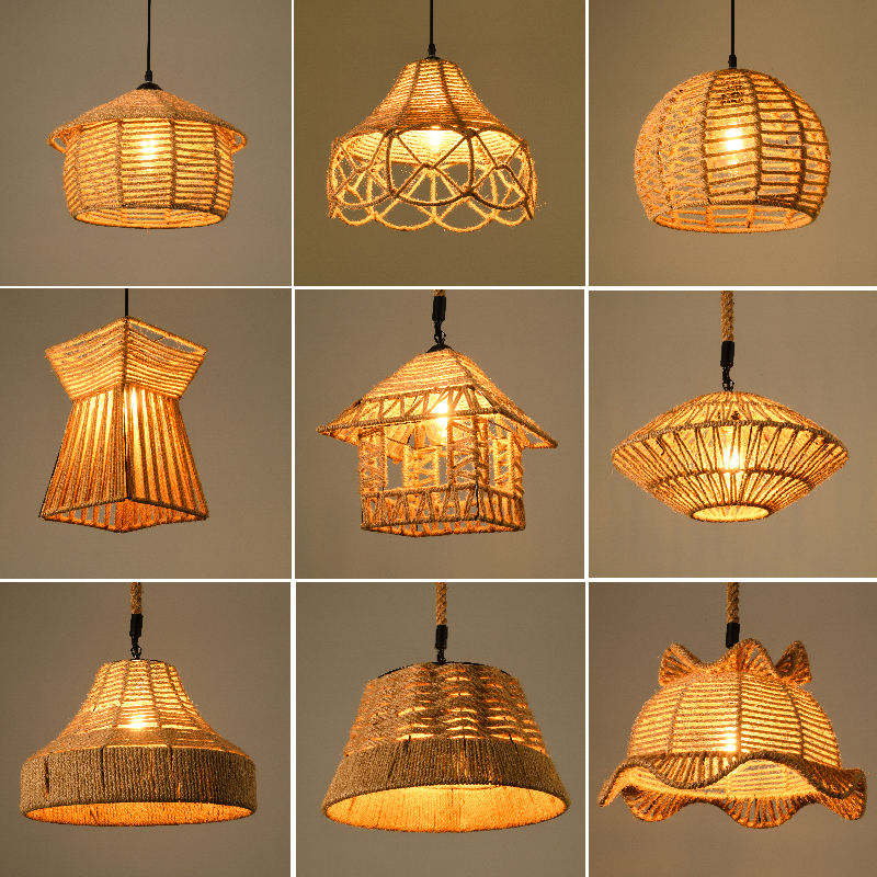 Lampe suspendue vintage en corde de chanvre de style industriel créatif E27 pour Loft Hot Pot Restaurant Bar magasin de vêtements Bar