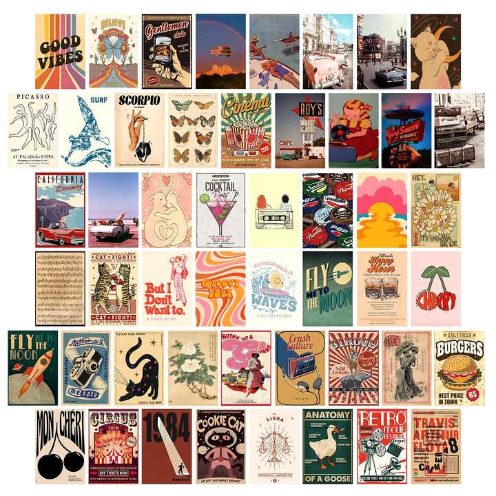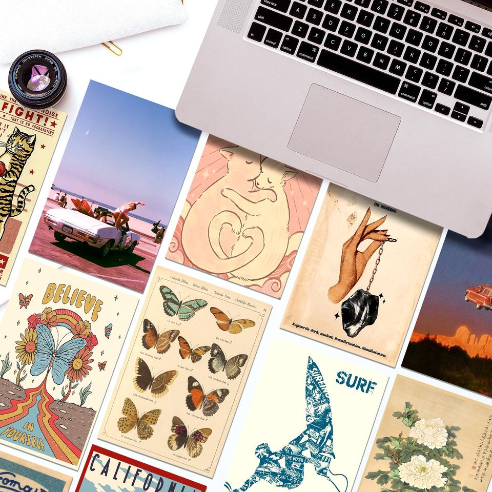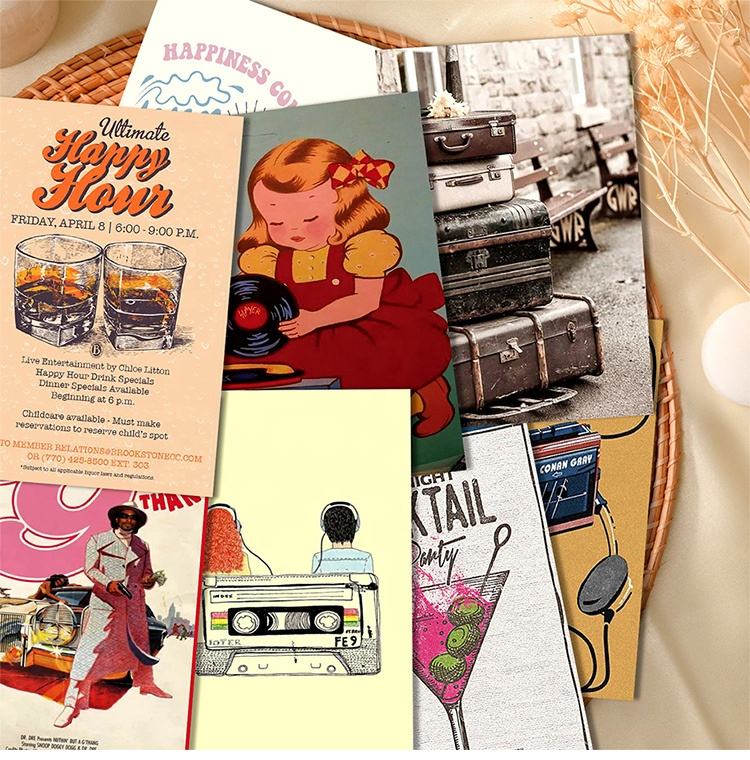 Kit de collage mural vintage à motif personnalisé, papier kraft et panneau duplex, album photo, images esthétiques, affiches imprimées, décor de chambre