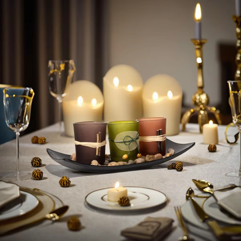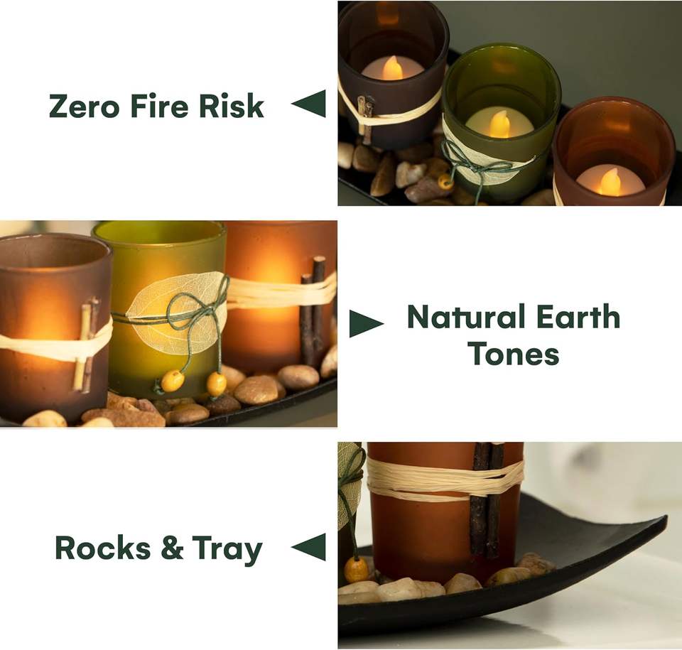 Bougeoirs à LED décoratifs vintage, 3 bougies sans flamme avec rochers et plateau pour décorations de Noël