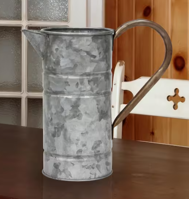Pichet à eau rond galvanisé au design vintage, poignée finie pour la maison et le jardin, produit décoratif pour Offre Spéciale
