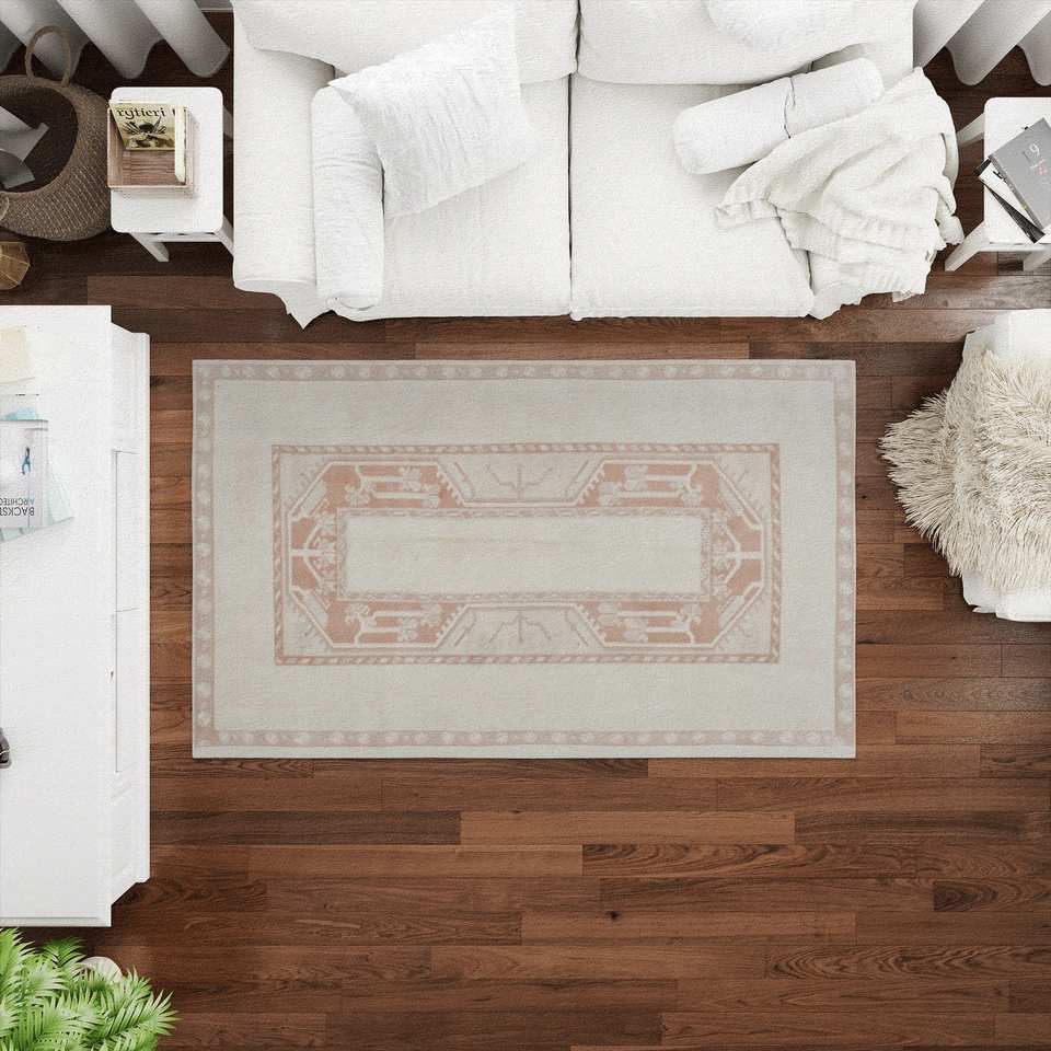 Tapis imprimé au design vintage : oriental, géométrique, beige, mat, décor antique, tapis doux non tissé