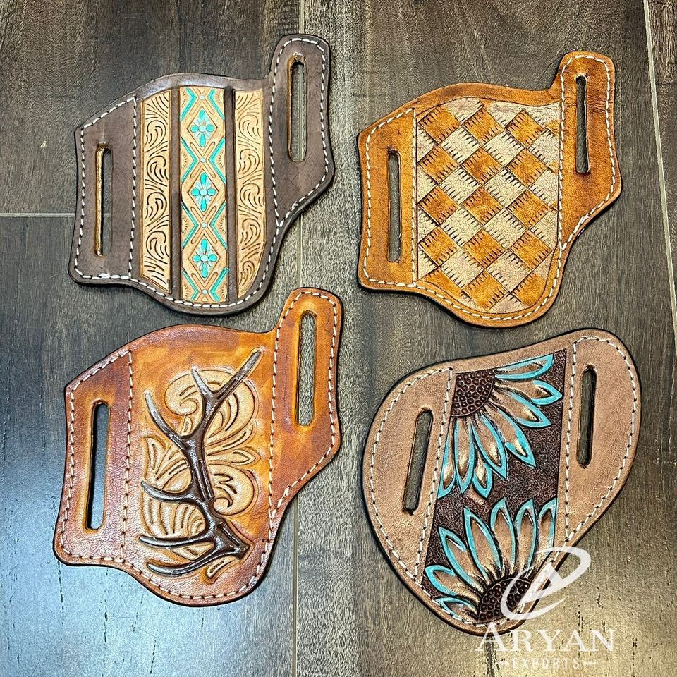 Design vintage RTS fait à la main Floral en cuir usiné gaine de couteau pour ceintures haute qualité luxe en cuir véritable couteau couvre