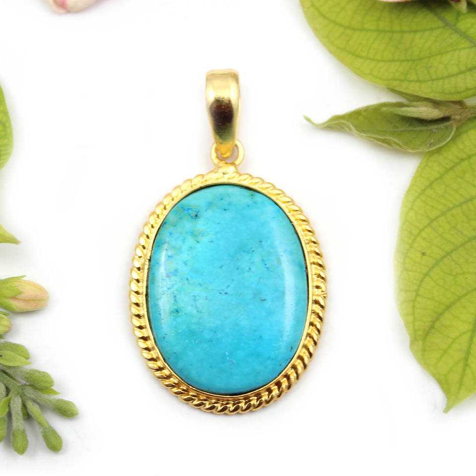 Vintage Design Turquoise Gemstone 24K Plaqué Or Forme Ovale En Laiton Métal Pendentif Bijoux pour Femmes En Gros En Vrac