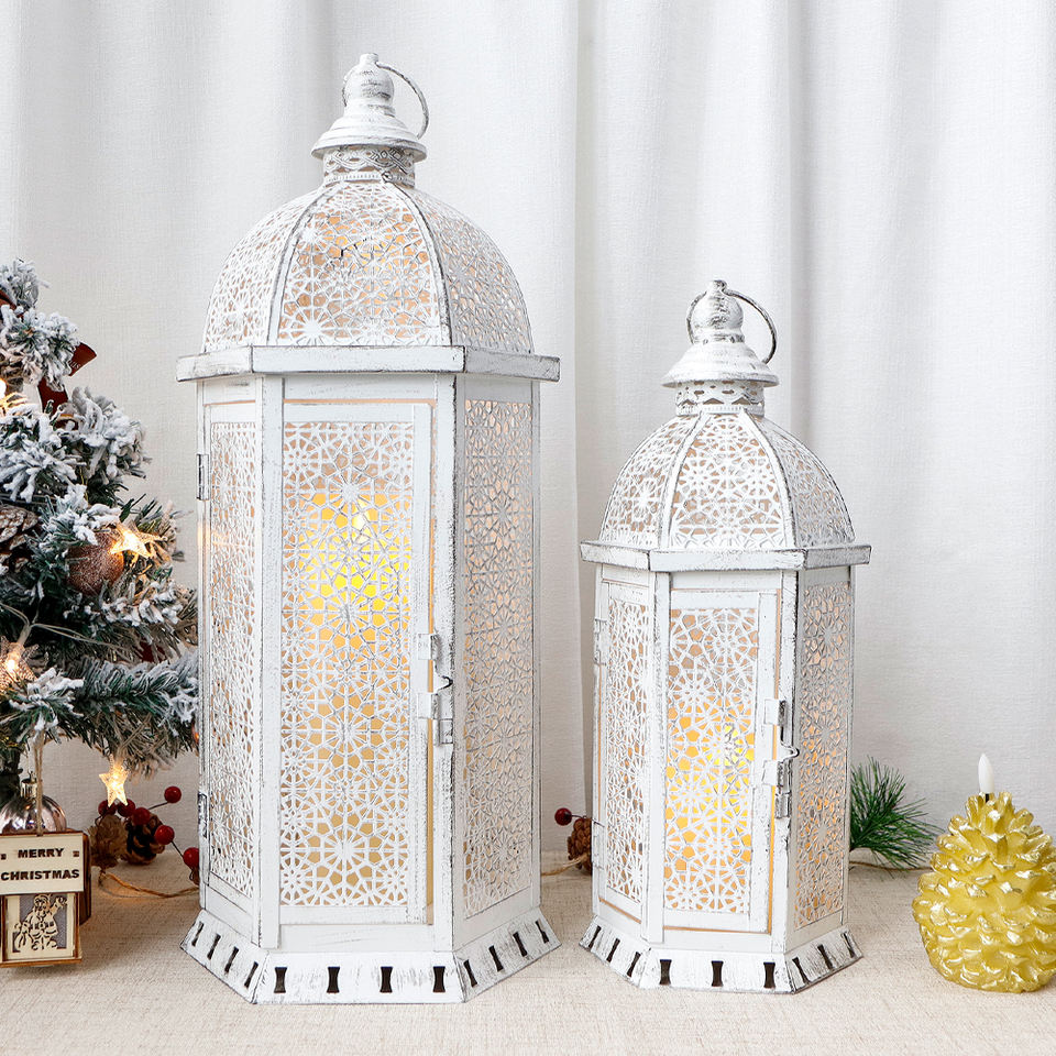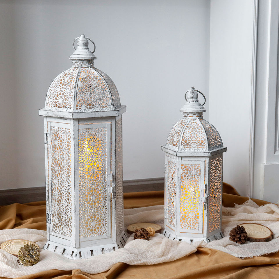 Vintage Design White Lantern Set Moroccan Style Floor Lantern Large Metal Lantern for Wedding Decor