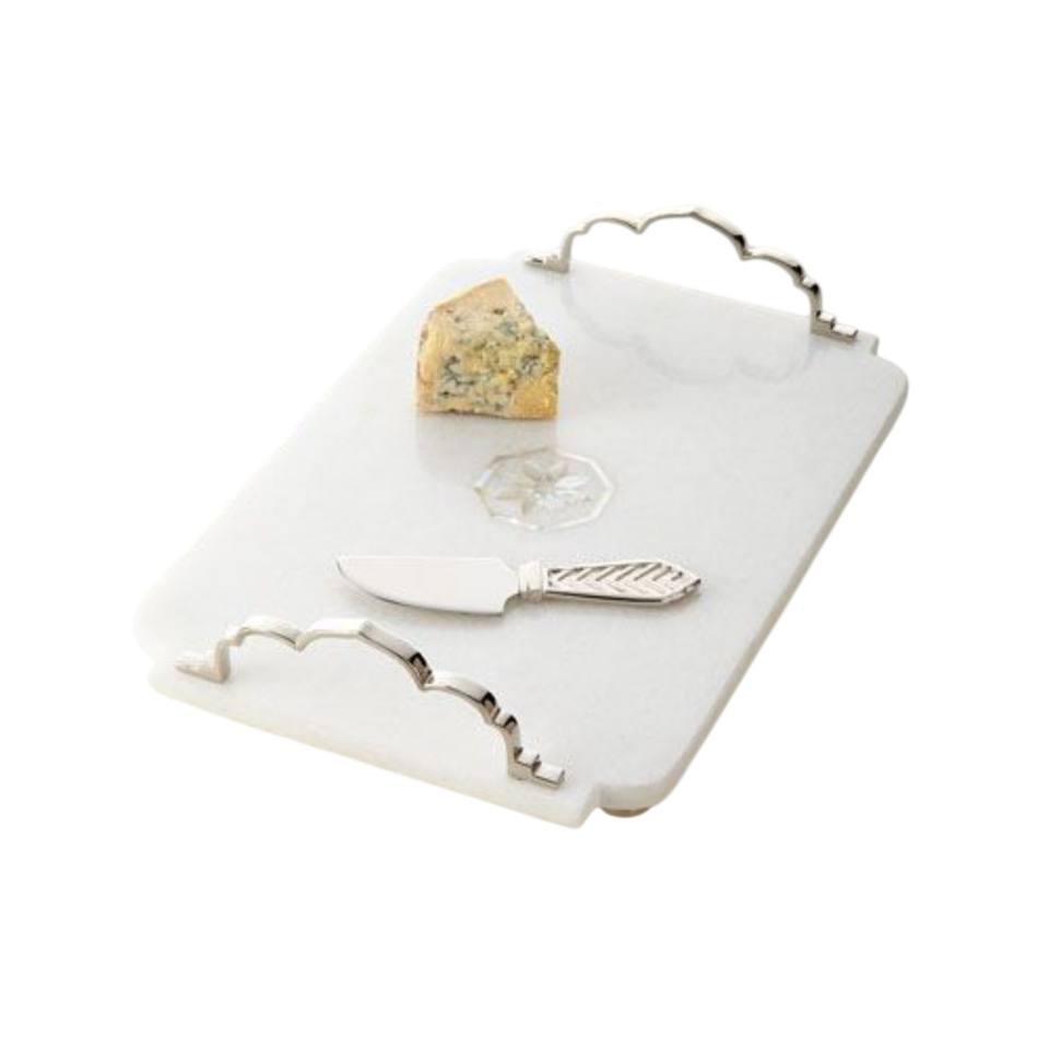 Plateau de service rectangulaire blanc en marbre naturel, design moderne, écologique, pour mariage, avec poignées en métal doré à motif floral, fait main