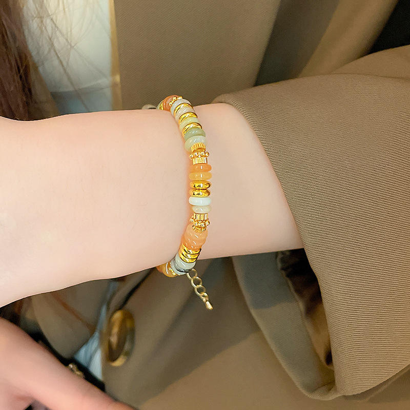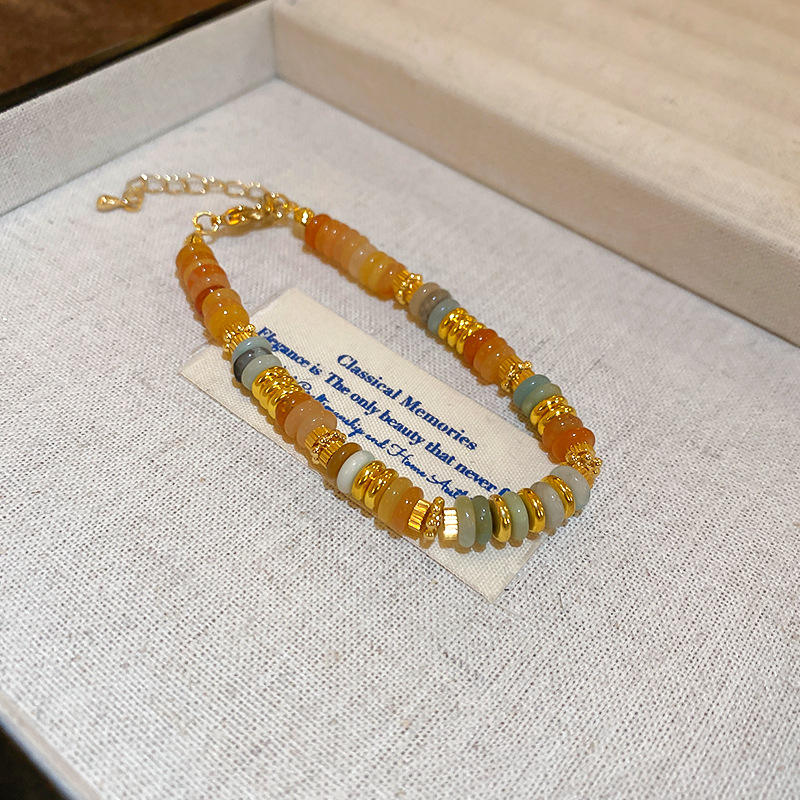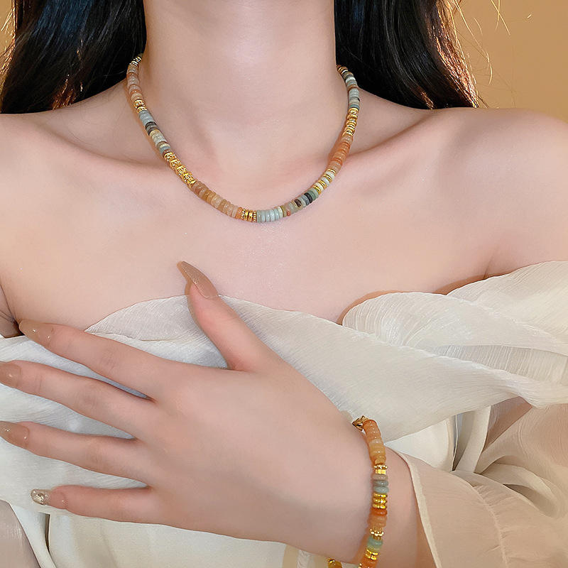 Vintage Design Women Luxury Jewelry Clavicle Chain Gold Plated Colorful Beaded Necklace Bracelet Set