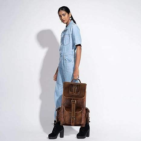 Sac à dos vintage pour ordinateur portable en cuir vieilli pour homme et femme | Sac de voyage en cuir marron foncé