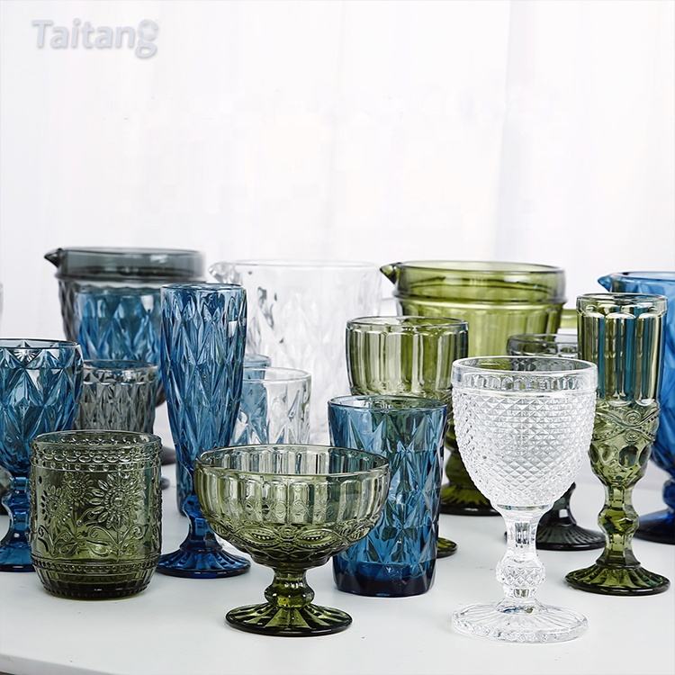 Coupe en verre gaufré vintage pour banquets et fêtes de mariage pour gobelets au champagne Gim Rum Rhomb Design