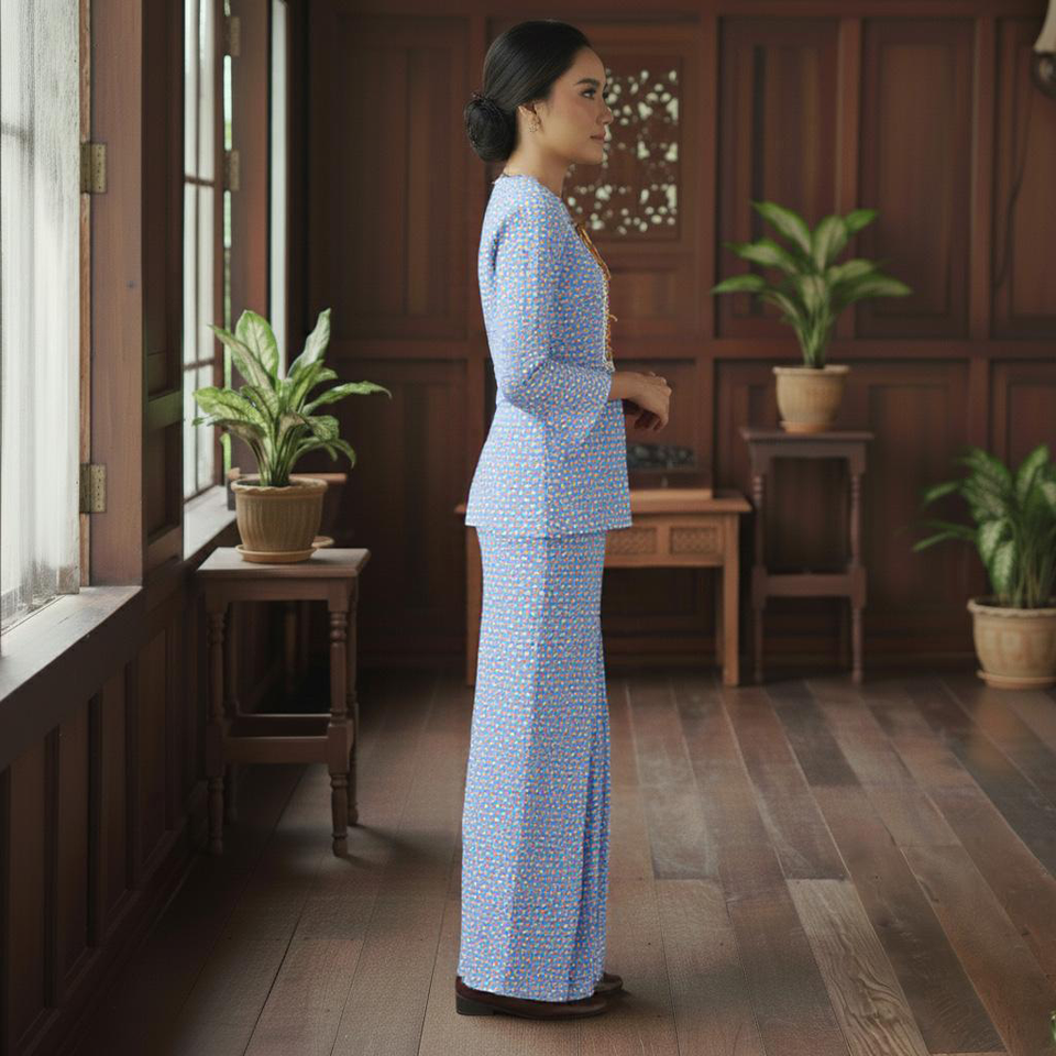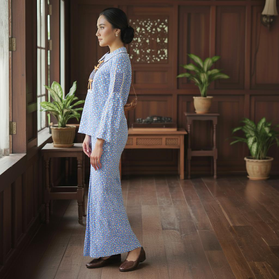 Vintage Embroidered Kebaya Lace Draping Polyester Fiber Geometric Pattern Eco-Friendly Sweep Train Maxi Dress Direct Factory