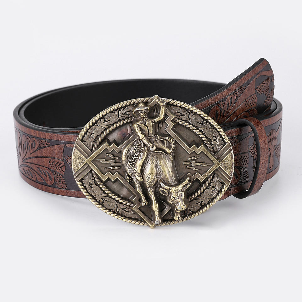 Vintage Ethnic Style Women's 4CM Wide Genuine Leather Belt Custom Length Dress Occasion Carved Floral PU Alloy Buckle HJ