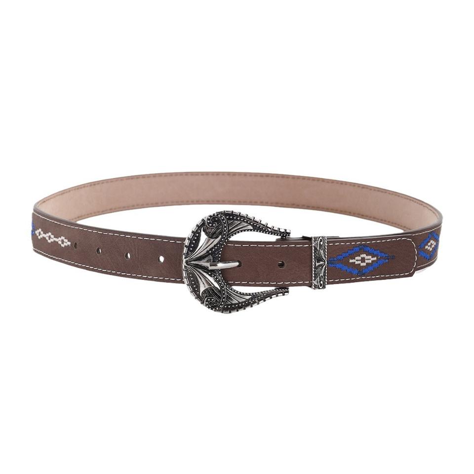 Vintage Ethnic Wide Women's PU Belt Custom Length Simple Embroidered Flower Design Fashionable Alloy Western Style for Various