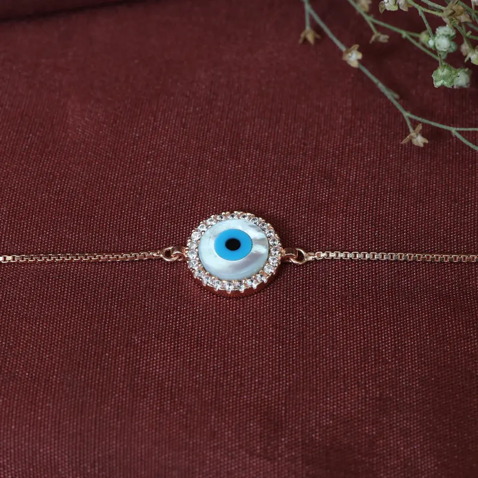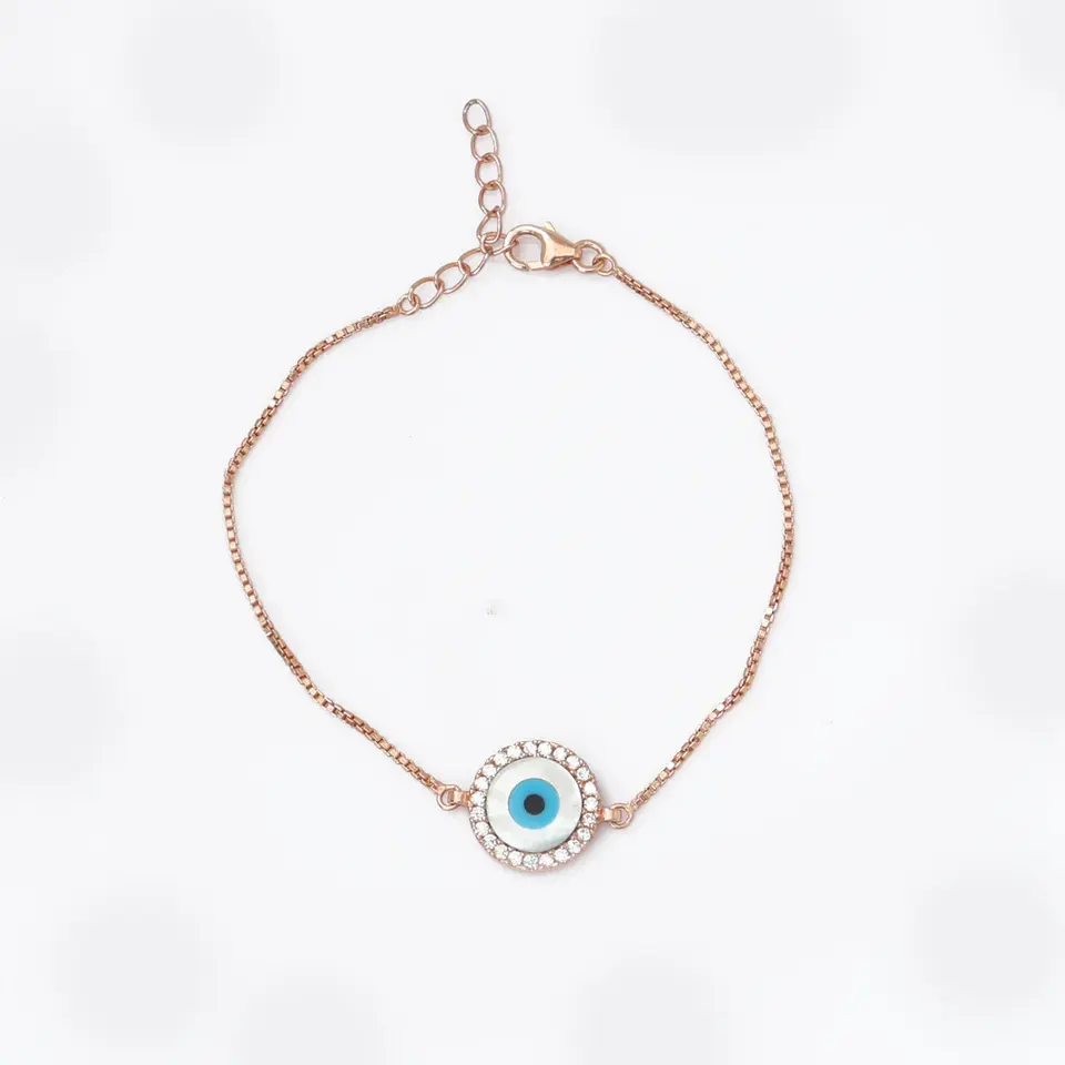 Vintage Evil Eye Bracelet for Women Rose Gold Plating Religious Protective Alloy Jewelry Zircon Pearl Diamond for Parties Gifts