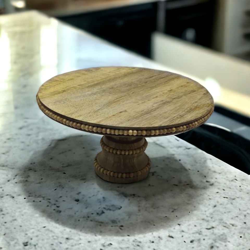 Vintage Farmhouse Mango Wood Hand-Carved Dessert Cake Display Stand Eco-Friendly Natural Wood Beads Wedding Dinnerware Set