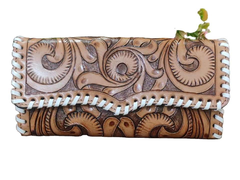 Product name:Yellow Saddle Blanket Clutch with Tooled Leather