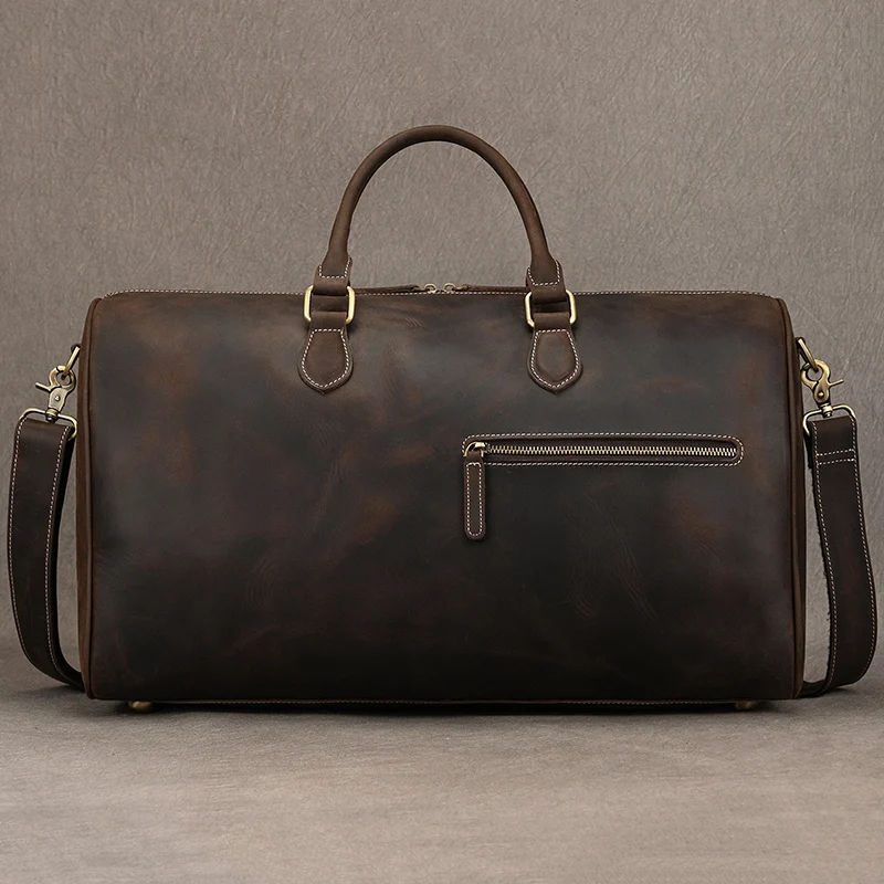 Vintage Fashion High-Capacity Genuine Leather Duffel Bag Embossed Design Shoe Compartment Adjustable Strap Water-Proof Durable