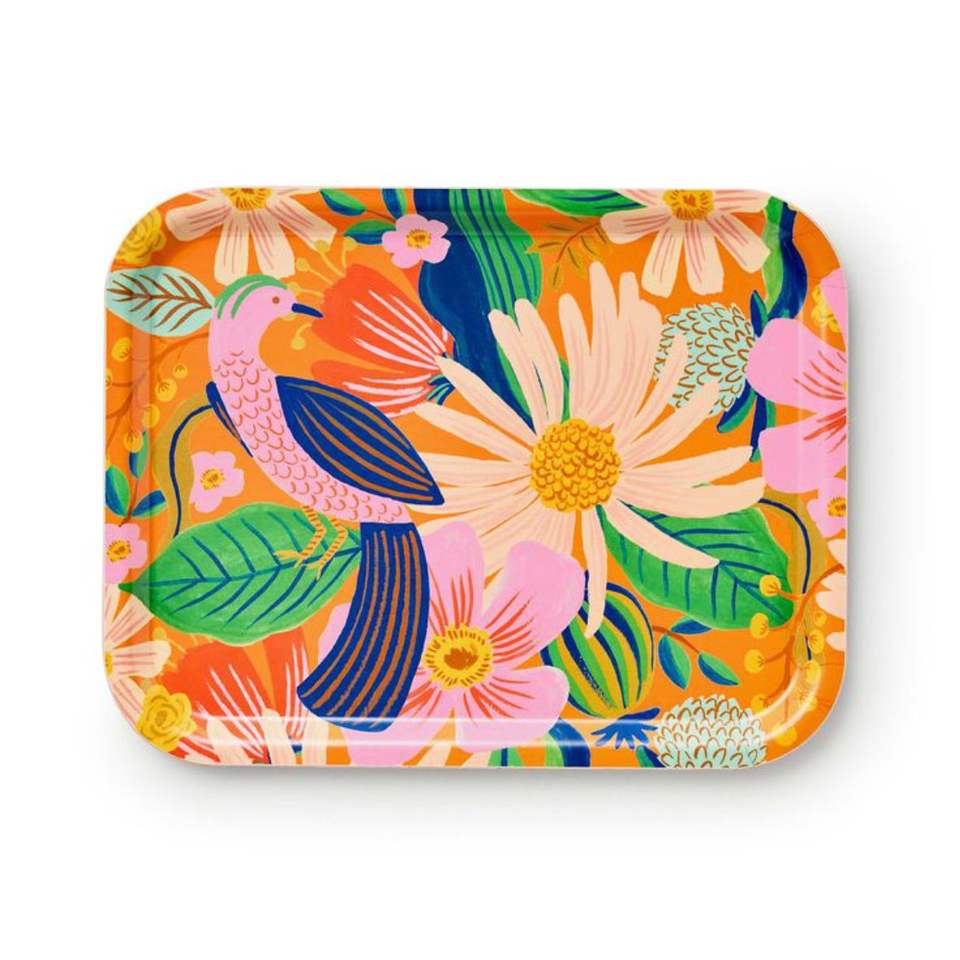 Plateau de service rectangulaire vintage en émail floral, en acier au carbone, coloré, décoratif, pour le thé, la nourriture et le café à la maison