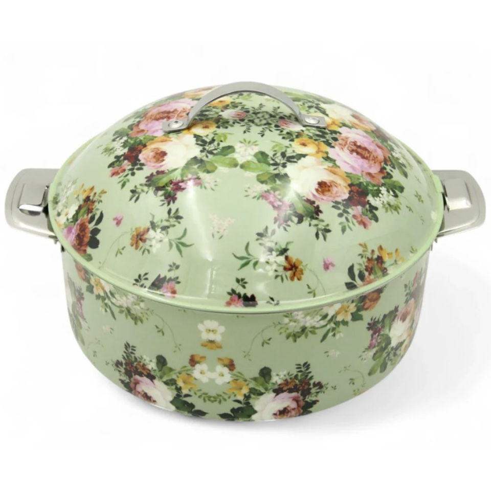 Casserole vintage à motifs floraux peinte à la main pour la cuisine et la décoration de la maison.