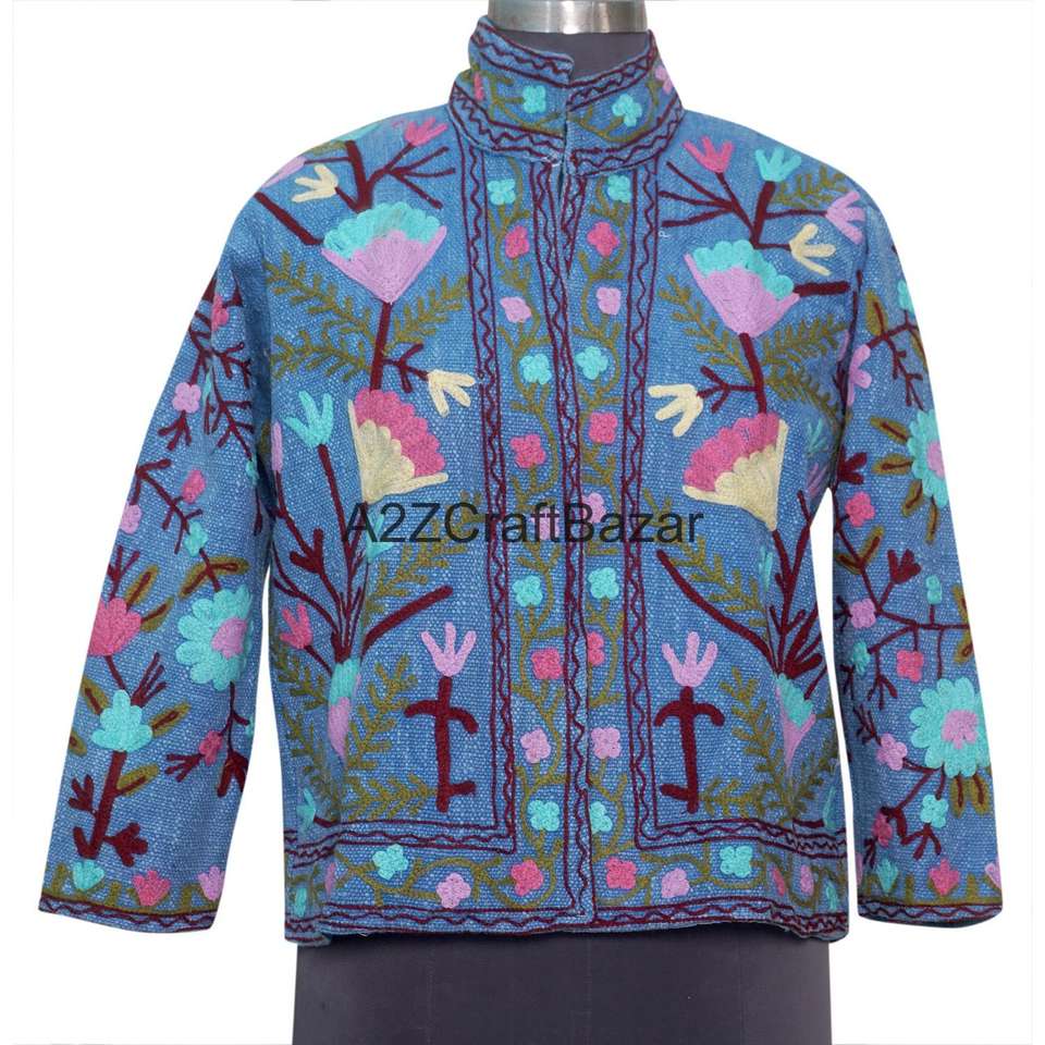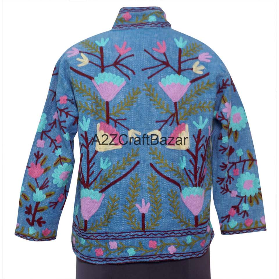 Blouson bomber en tricot à motif floral vintage, 100% coton, écologique, respirant, séchage rapide, broderie machine, design dessiné à la main